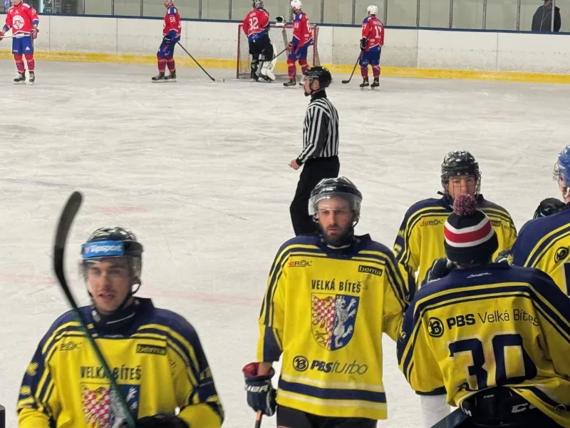 Druhé čtvrtfinálové střetnutí se hrálo na našem ledě ve Velké Bíteši v sobotu 8.2. A byl to výkon, který můžeme označit za jeden z nejlepších v této sezóně. Na ledě to byl rychlý, tvrdý souboj, v němž jsme předváděli nátlakovou hru a měli v některých pasážích i herně navrch. Po první třetině byl stav sice nerozhodný 1:1, ale ve druhé části jsme předvedli výborný kolektivní výkon a podpořený skvělým výkonem našeho brankáře, díky čemuž jsme se dostali do průběžného vedení o jednu branku. Když Chotěboř začátkem třetí třetiny vyrovnala skóre, vrátili jsme si za chvílí vedení zase zpět. Bohužel, dvě minuty před koncem utkání, přišla chybička, když náš brankář Kuba Bartošek při špatné domluvě s obránci ztratil kotouč za bránou, což hosté nekompromisně využili k vyrovnání. Po základní době tedy utkání dospělo až do 5minutového prodloužení 3 na 3. Zde ovšem branka přes šance na obou stranách nepadla. Na řadu tedy přišly samostatné nájezdy, které rozhodla až šestá série, kdy se nakonec radovali hokejisté Chotěboře. I když jsme měli na dosah vyrovnání série, druhý bod si nakonec odvezli hosté. I tak naši kluci předvedli výkon, za který se rozhodně nemusí stydět, a diváci viděli nádherné utkání hodné play-off.