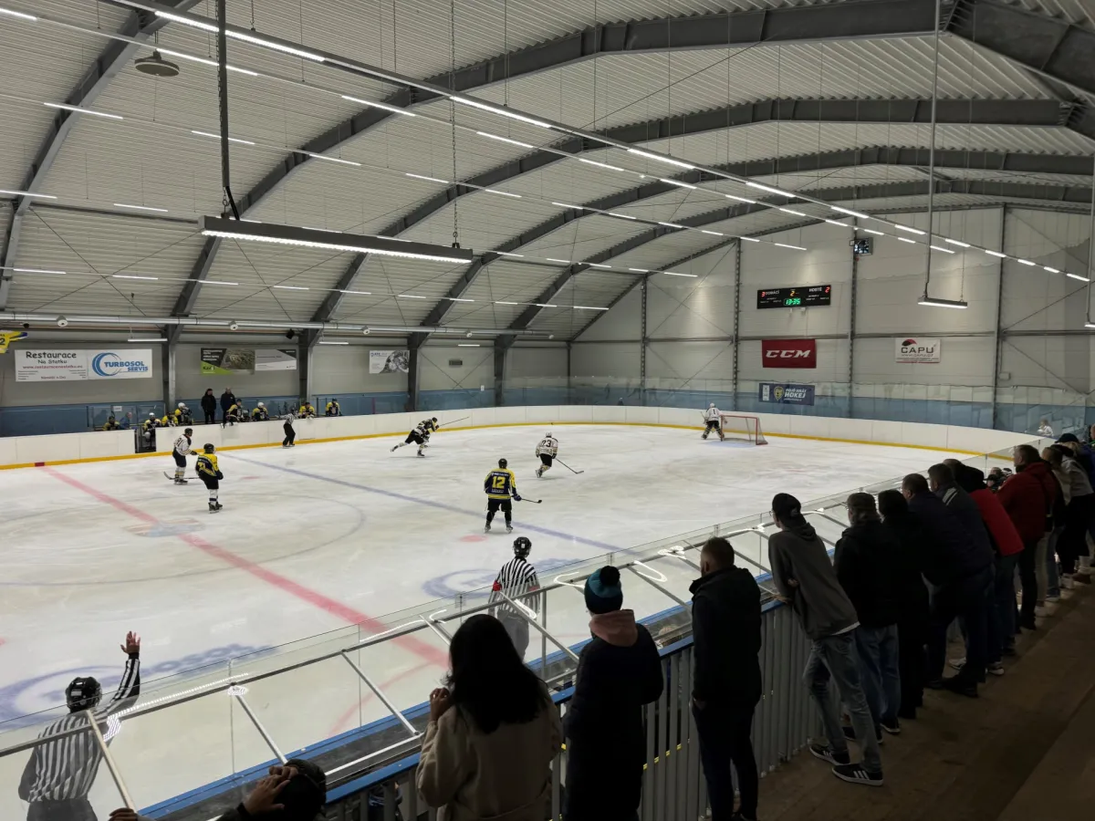 Hned v první minutě po chybě v obraně šli domácí do vedení. Nám se podařilo vyrovnat v 6. minutě, kdy Honza Sokolík prostřelil brankáře střelou, která se odrazila od teče obránce. Přestože jsme po zbytek první třetiny hráli aktivněji, těsně před jejím koncem domácí znovu skórovali a vrátili si vedení.
