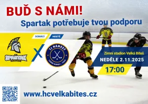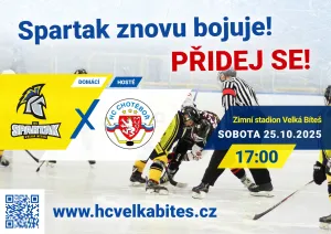 Dojdi podpořit Spartaka v boji proti Lednímu medvědovi aneb HC Spartak Velká Bíteš proti HC Lední medvědi Pelhřimov.Áčko bude...