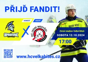 Neděle 13.10.2024 HC Spartak Velká Bíteš – Technika Brno 1:12 (0:6, 1:3, 0:3) Sestava HC Spartak V. Bíteš: Kozák, Drábek,...