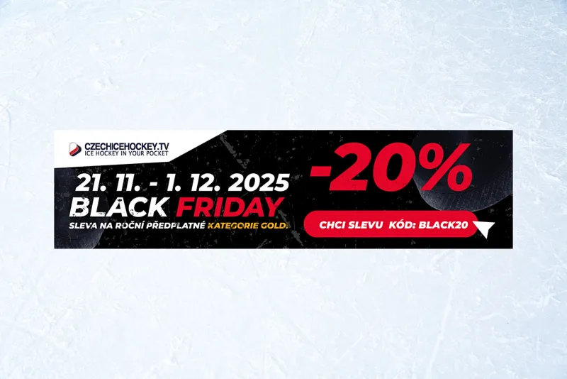 Na czechicehockey.tv běží Black Friday akce — 20% sleva na roční GOLD předplatné.