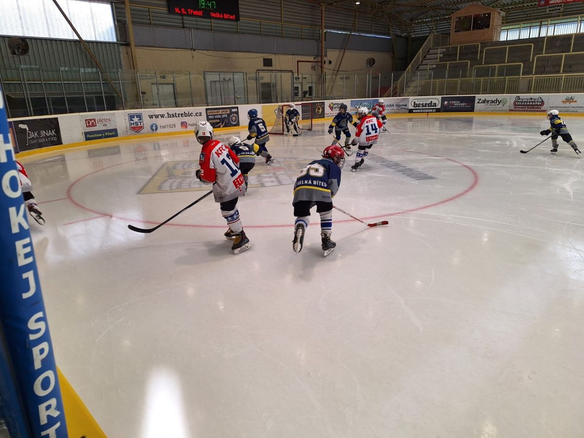 Nová sezona začala už i pro mladší žáky. V prvním mistrovském utkání zavítali na led Třebíče, která působí ještě v této sezoně v exilu v Moravských Budějovicích. Po přípravném utkání, které jsme sehráli se stejným soupeřem před dvěma týdny jsme věděli, že nás nebude čekat nic lehkého. Už od prvních minut se ukazovala výrazná převaha soupeře, který nás prakticky nepustil z vlastního obranného pásma.