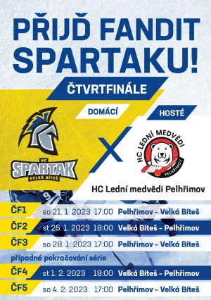 3. zápas HC Lední Medvědi Pelhřimov – HC Spartak Velká Bíteš 8:2 (2:1, 1:1, 5:0)Branky a nahrávky:5. Kochrda (Bříza), 7. Brabec...