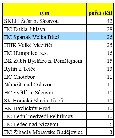 Tradiční celorepubliková akce Pojď hrát hokej, která otevírá dveře dětem k prvnímu setkání s ledem a hokejovou výstrojí, proběhla na konci září a měla na Vysočině opět velký ohlas. Na všech stadionech v regionu si malí sportovci i jejich rodiče mohli vyzkoušet, co obnáší první hokejové krůčky. Největší účast zaznamenal Žďár nad Sázavou, kde na led vyrazilo 42 dětí. Druhé místo obsadila Jihlava s 28 malými nadějemi. Skvělý výsledek si ale připsala také Velká Bíteš, kde se do náboru zapojilo 26 dětí – více než ve Velkém Meziříčí (25) či v Humpolci (16).