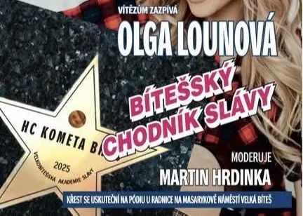 Zveme naše hráče a hokejové příznivce na křest hvězdy HC Kometa Brno do bítešského chodníku slávy, který se uskuteční v úterý 5. srpna od 17 hodin na pódiu u radnice na Masarykově náměstí. Na akci vystoupí zpěvačka Olga Lounová. Bítešská hokejová mládež se bude moct účastnit křtu přímo na pódiu s hráči a trenéry HC Kometa Brno, takže nezapomeňte si vzít naše dresy popř. kdo má dres Komety :-)