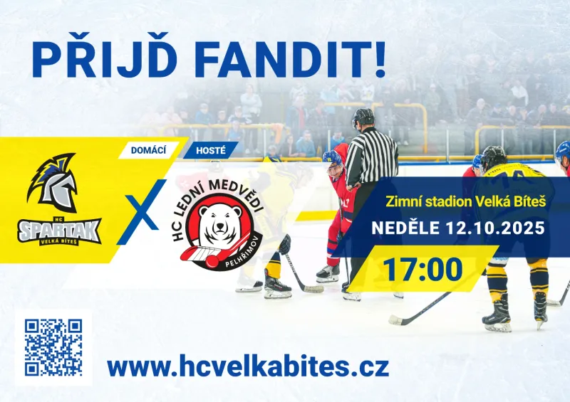 Dojdi podpořit Spartaka v boji proti Lednímu medvědovi aneb HC Spartak Velká Bíteš proti HC Lední medvědi Pelhřimov.
