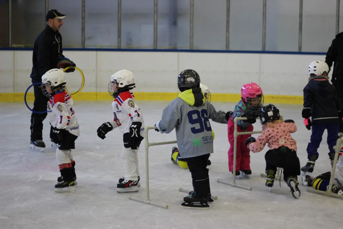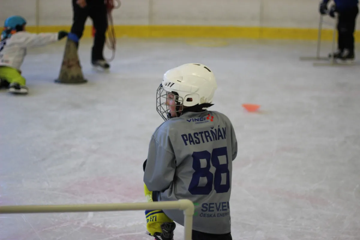 V mezičase byly rodičům pomocí prezentace předány informace o náborové akci „Pojď hrát hokej“, jejím průběhu, výhodách přihlášení se do projektu, ale také obecné informace o fungování klubu, náborech, trénincích, trenérech, ideologii klubu atd. Po pro děti nepříliš zajímavé části, což byly již zmíněné informace o klubu a dění kolem zimního stadionu, jsme se přesunuli na led. Na řadu přišlo úvodní seznámení se s trenéry (zpočátku značně nesmělé), kteří na děti vyrukovali s množstvím her a zábavnými cvičeními. Mrazík, vybíjená, hoňka, plazení se po ledě a nechyběla ani úvodní “lekce bruslení”. Na druhé straně hřiště probíhal ukázkový zápas 3. a 4. tříd, včetně vložených herních cvičení. Rodiče nově příchozích dětí tak na vlastní oči mohli zhlédnout šikovnost našich nadějí.