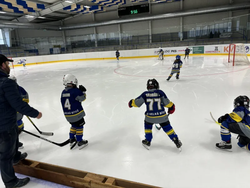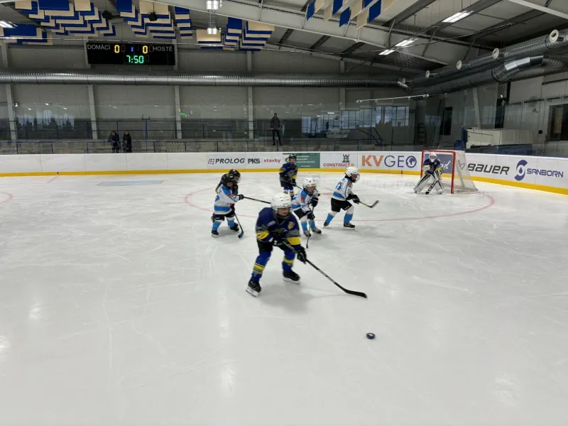 První zápasy naši nejmenší hokejisté odehráli na zrekonstruované hrací ploše v sousedním Velkém Meziříčí. Pro mnohé z nich to byly opravdu první zápasy a tak toho „hledání se na hřišti“ bylo více než obyčejně. Navíc se poprvé v této kategorii hrálo systémem 3 na 3.