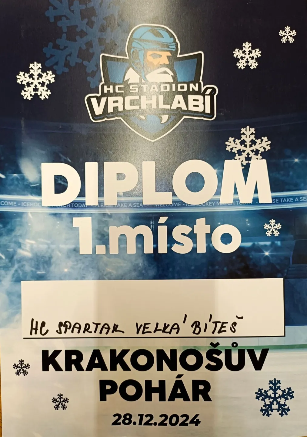 Nejdále na svůj turnaj cestovali třeťáci, kteří se utkali o Krakonošův pohár ve Vrchlabí. Na tomto turnaji se vedle hokeje hrál také fotbal - vítěze turnaje určil součet "bodů" v obou sportech. Na ledě naši hokejisté nenašli přemožitele. Ve skupině porazili Trutnov i domácí Vrchlabí. Finále proti okresnímu rivalovi z Velkého Meziříčí skončilo vítězstvím bítešských hokejistů 17:9. Po obědě následoval turnaj ve fotbalu, ve kterém jsme porazili Trutnov a prohráli s Vrchlabím. Do celkové tabulky jsme si připsali 4 body, což v součtu znamenalo celkové vítězství - Krakonošův pohár i zlaté medaile tedy putovaly do Velké Bíteše.
