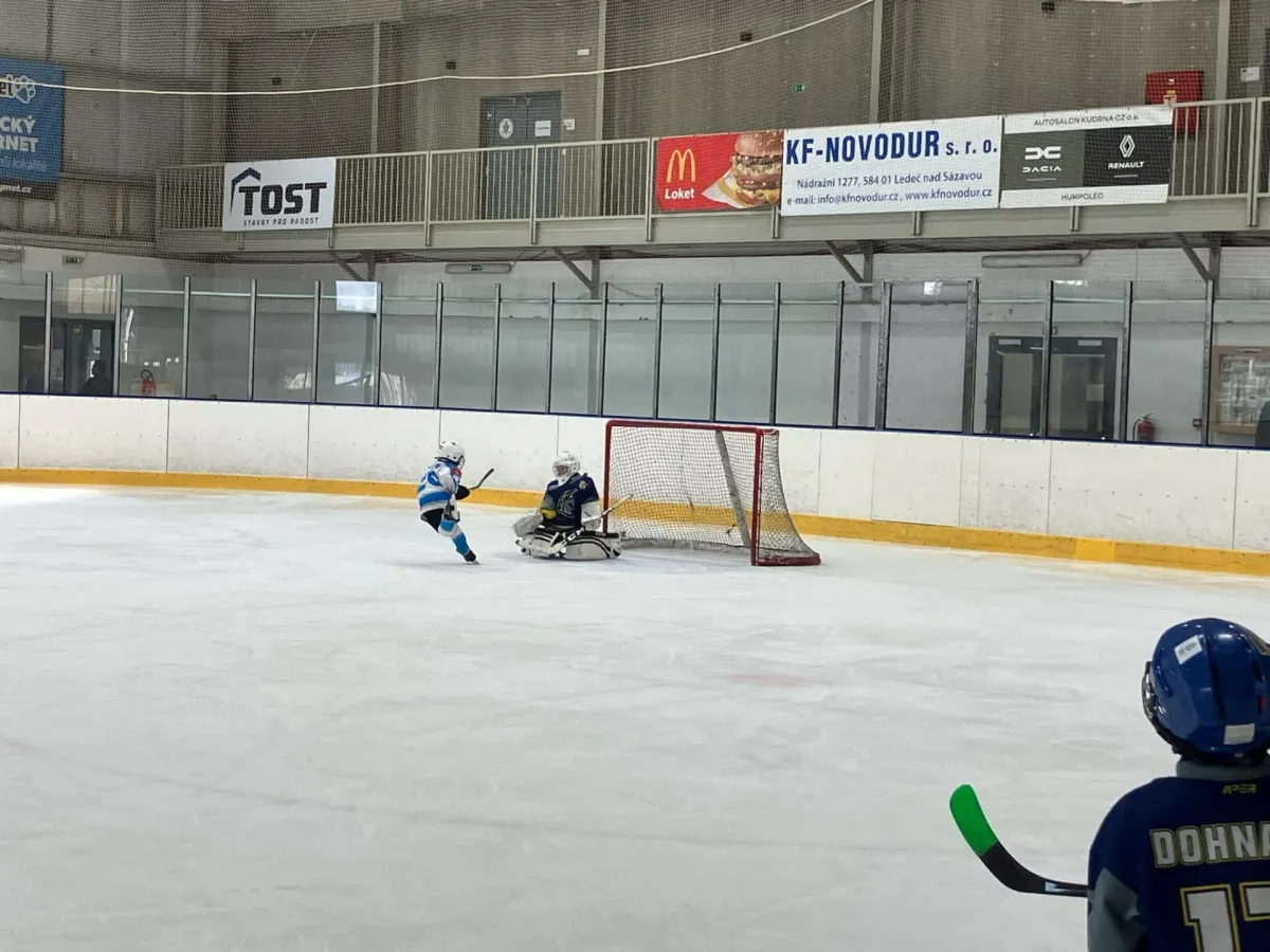 Úspěšný turnaj v Ledči nad Sázavou mají za sebou bítešští třeťáci. Delší cesta autobusem brzy ráno měla na hráče pozitivní vliv a připravila je na týmový výkon na ledě. Úvodní zápas proti domácím byl plný obratů. Do vedení šli bítešští, kteří si přesnými střelami vypracovali náskok až o tři branky. Za nedlouho potom však domácí skóre otočili a dokonce vedli o dva góly. V podobném duchu se nesla i druhá třetina. Na rychlý obrat Bíteše domácí opět zareagovali a znovu odskočili do dvoubrankového vedení. Klíčovým momentem byly dva nájezdy Ledče na konci prostřední části - Karel oba nájezdy vychytal a nastartoval svůj tým k obratu. Ve třetí třetině totiž padaly góly především do brány domácích, díky čemuž bítešští slavili své první vítězství.